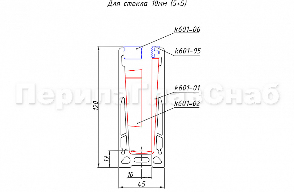 k601 — профиль для ограждений на несущем стекле (для стеклянных ограждений). Алюминиевый профиль чаще всего используется при строительстве таких объектов, как торговые дома, бизнес-центры, отели, спортивные сооружения. Максимально допустимая высота ограждения может доходить до 1200 мм, боковая нагрузка – до 430 кг. В данной модификации профиля предусмотрены крепежные отверстия.Наличие крепежных отверстий гарантирует более удобную и быструю установку профиля на объекте.