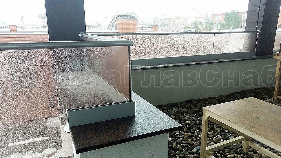 Профили из анодированного алюминия - это топ, подходят даже для толстых стекол, включая триплекс. Прижимные клинья выше чем обычно (8 см) лучше фиксируют, конструкция получается надежней и устойчивей. Хорошо, что монтажные отверстия просверлены заранее, положил - прикрутил - вставил стекло - зафиксировал.