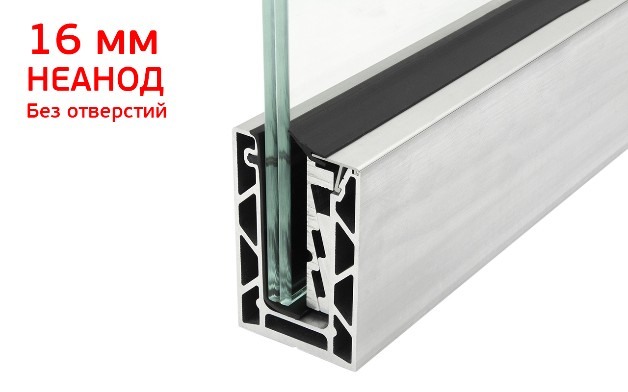 В комплект неанодированного профиля под стекло 16мм и 8+8мм входит:
