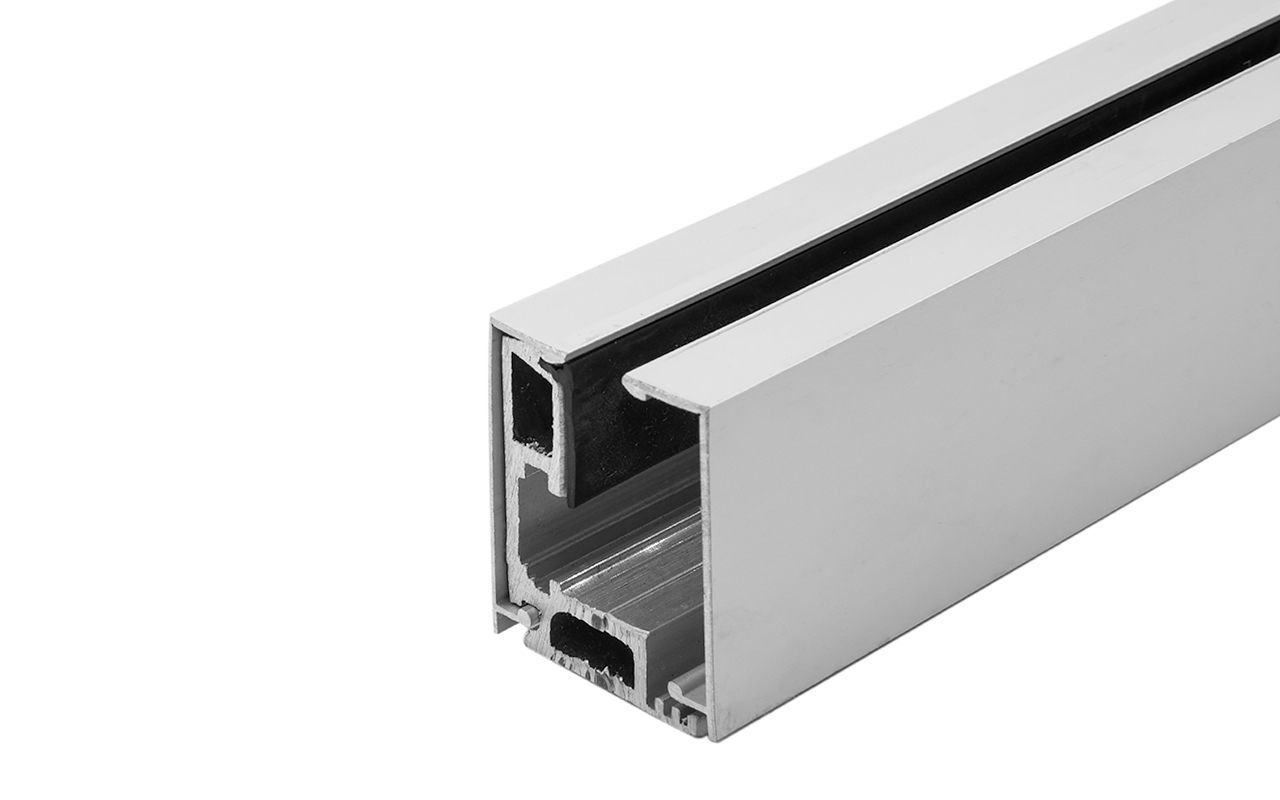 Основной профиль - алюминиевые хлысты. Они оборудованы специальными отверстиями для крепления зажимов. Для удобства, надежности и защиты стекла от порчи этот элемент дополнен резиновым уплотнителем.