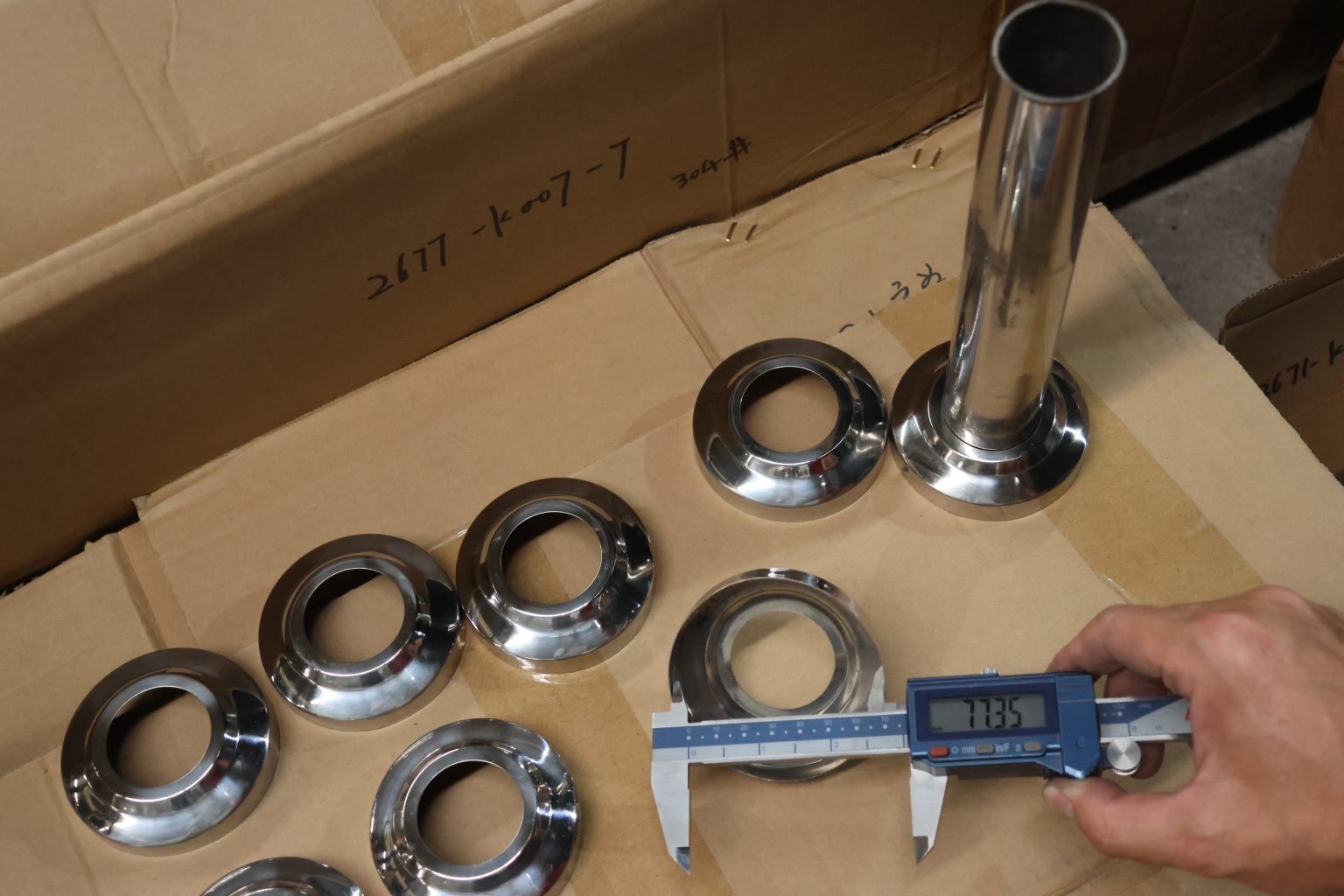 Низ стойки фигурный Ø38.1, Ø78х0.5 мм, полированный (AISI 304) #400 k007-7