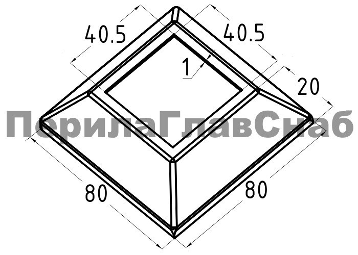 Низ стойки 80х80х20 со стенкой 1 мм под квадратную трубу 40х40 (k808, k866). Наконечником в данном случае вам может служить k222или k239.