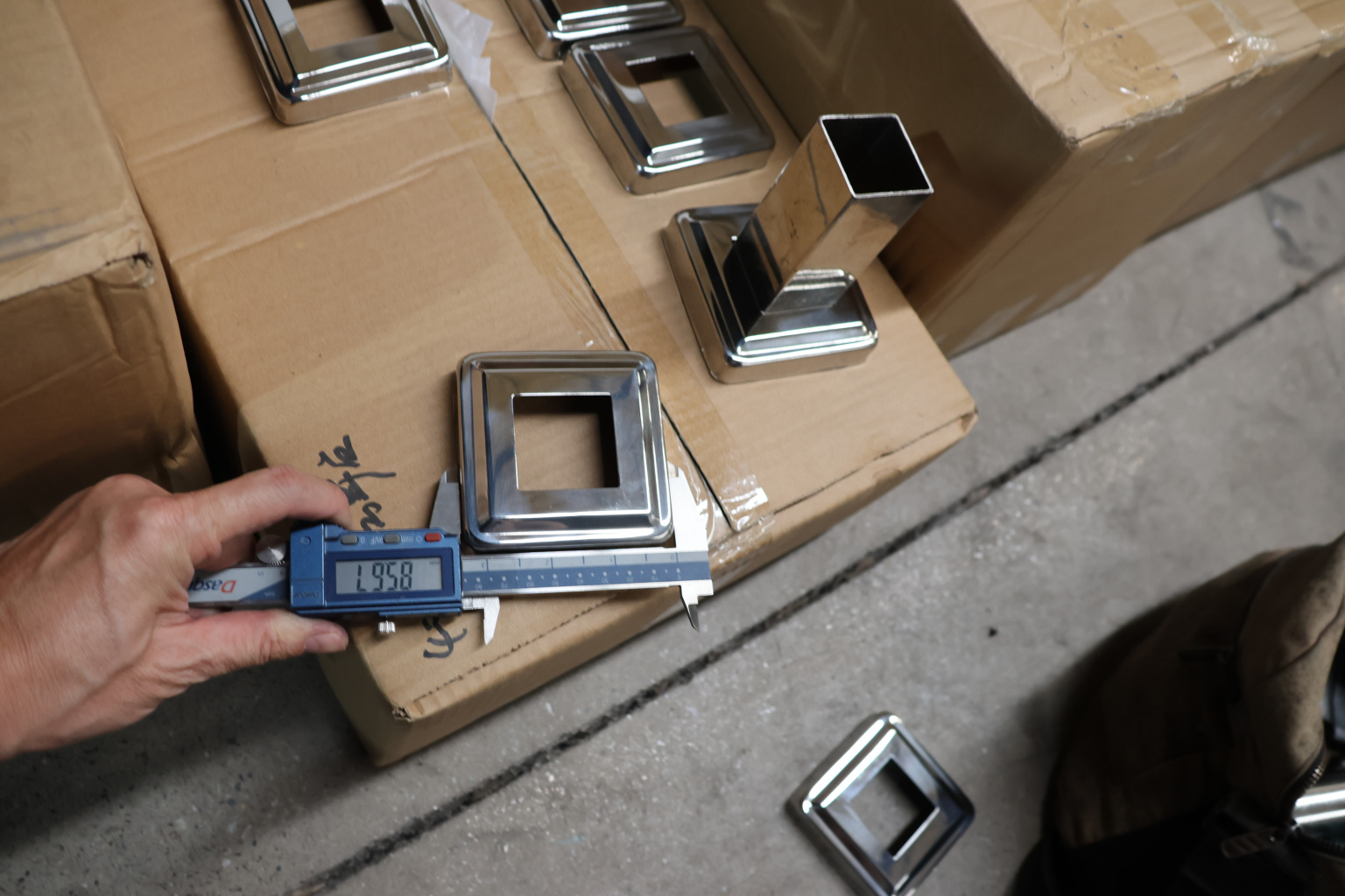 Низ стойки фигурный под трубу 40х40 мм, 82х82х0.8, высота 19 мм, полированный (AISI 304) k030