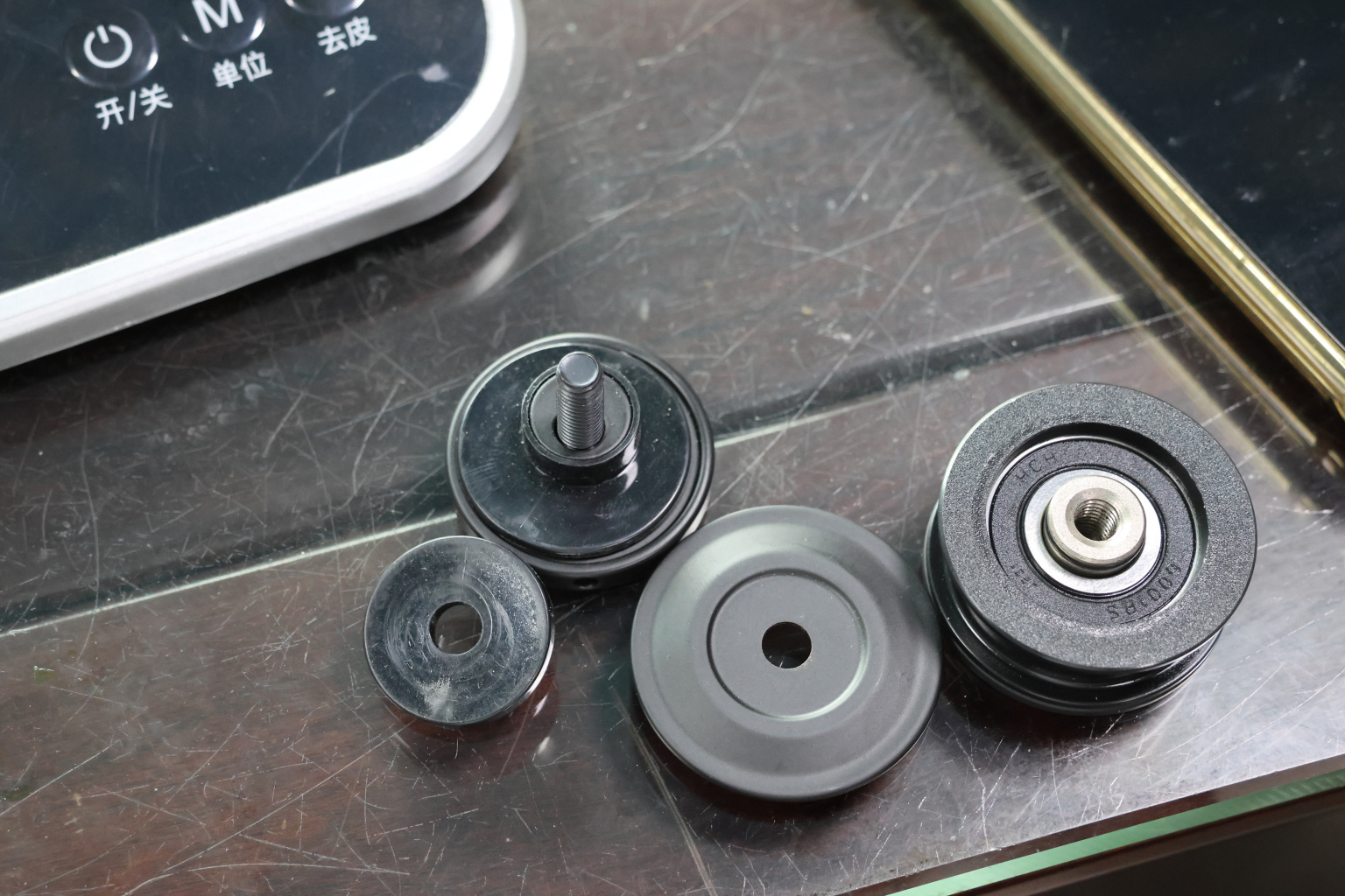 На дверь устанавливаем верхние ролики из комплекта в подготовленные вырезы в стекле. Сверху накидываем дверь и затягиваем ролики.