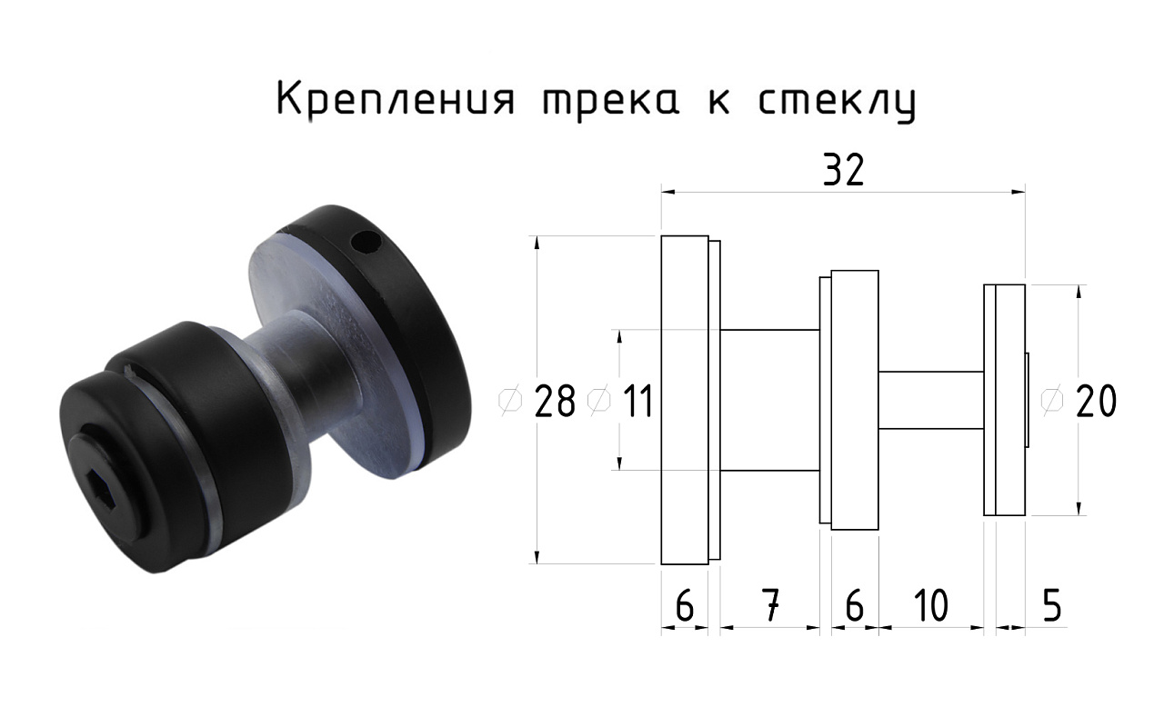 Крепление трека 30х10 к стеклу, AISI 304 черный t449 BL купить в Волгограде