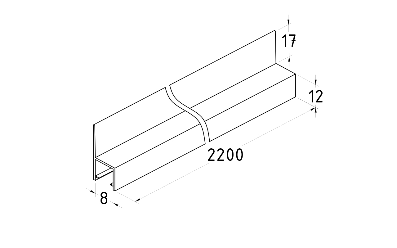 Длина 2200 мм. Монтируется по всему периметру стеклянного листа. Позволяет соединять стеклянные панели между собой