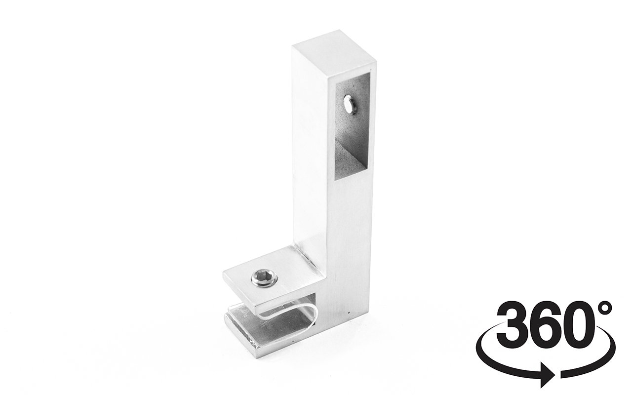 Коннектор предназначен для крепления профильной трубы 30х10 мм к стеклу в горизонтальной ориентации параллельно стеклу, при монтаже штанг верхней обвязки душевых кабин.