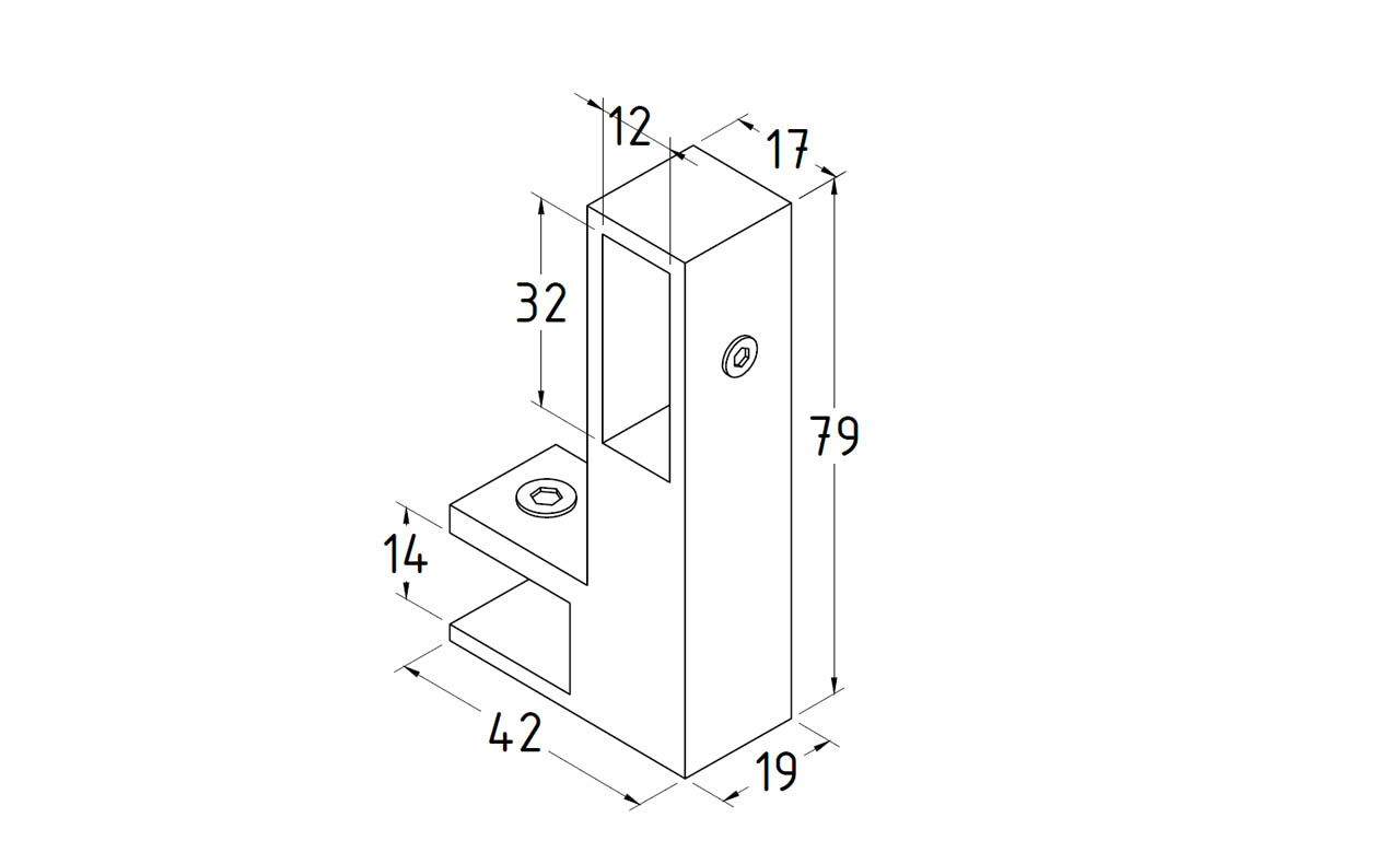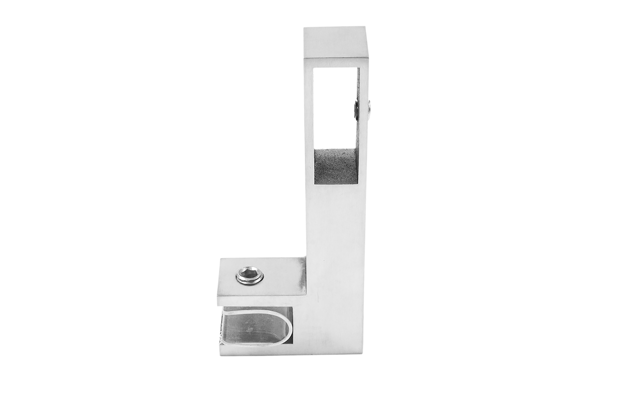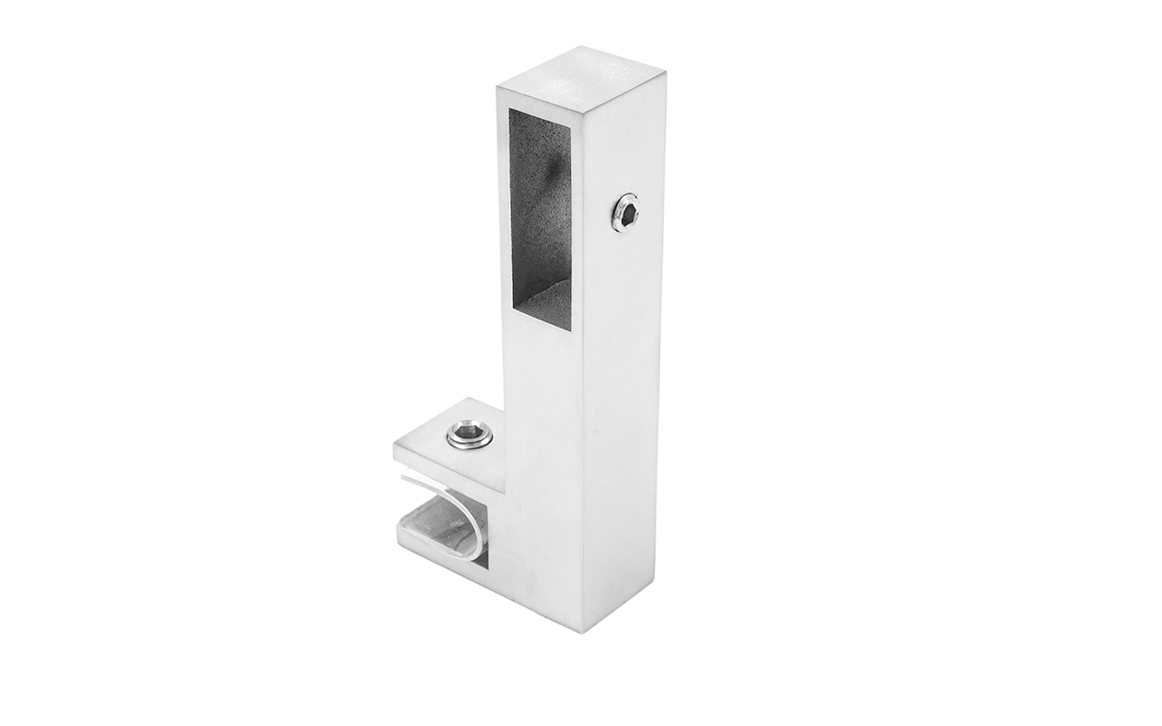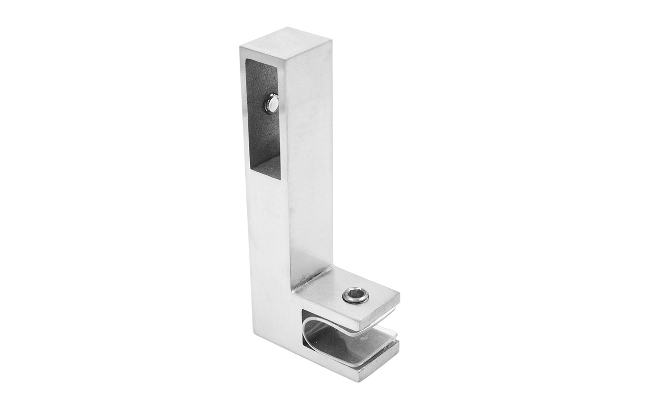 Коннектор предназначен для крепления профильной трубы 30х10 мм к стеклу в горизонтальной ориентации параллельно стеклу, при монтаже штанг верхней обвязки душевых кабин.