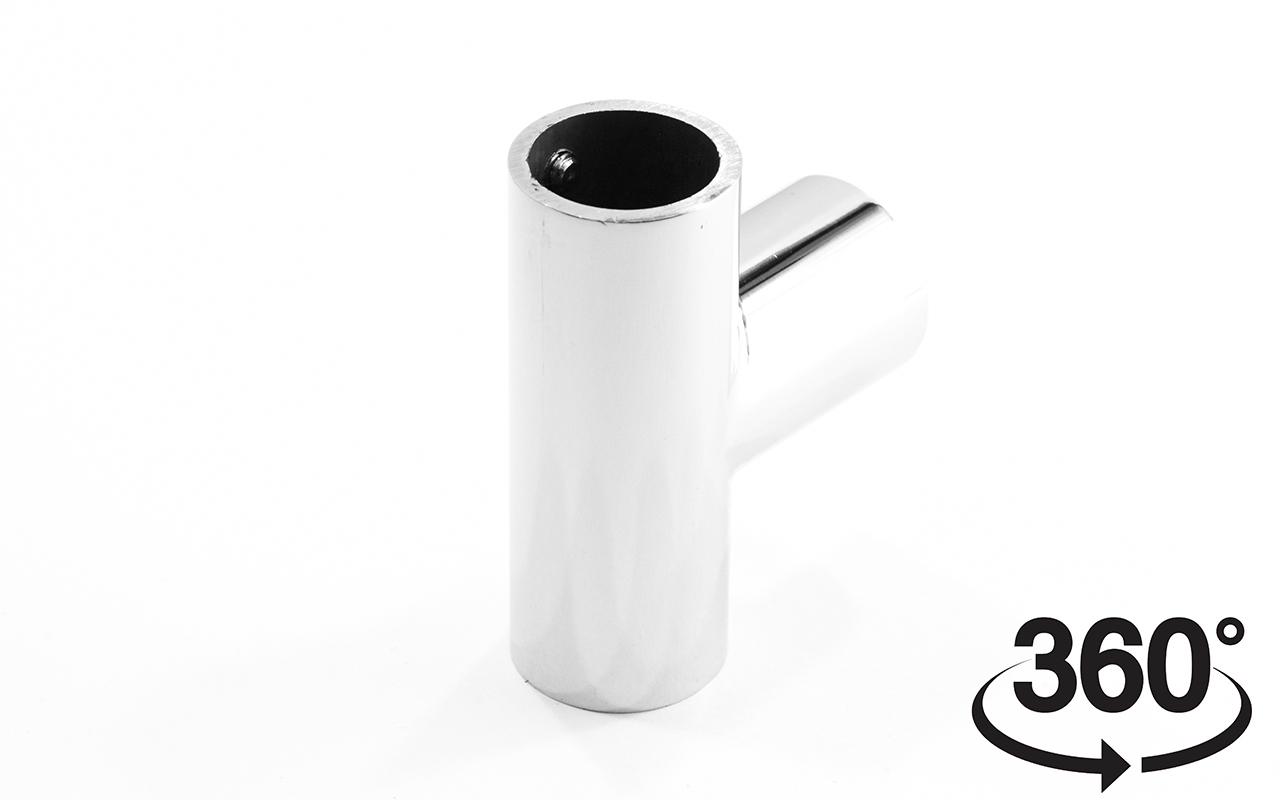 Соединитель-тройник для трубы 19 мм. Материал - латунь-хром, поверхность- полированная