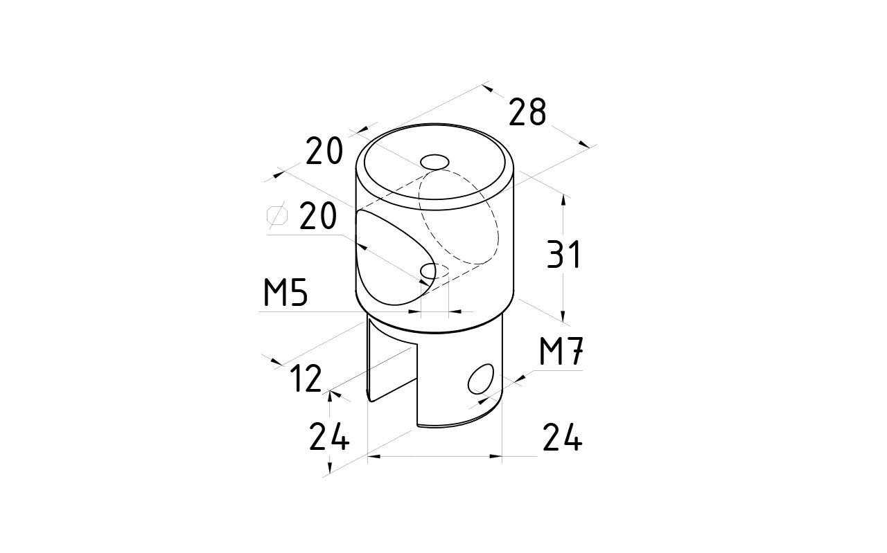Крепежный элемент глухой для трубы 19 мм, полированный. Марка стали AISI 304.