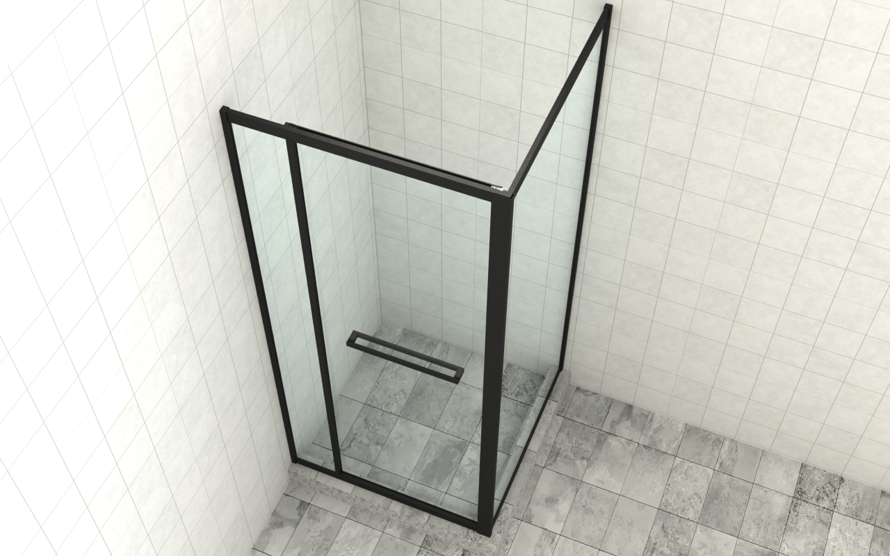 Комплект душевой с внутренней подвижной дверью,толщина стекла 8мм, 900х900х2000, AUSI 304, черная t470 Bl