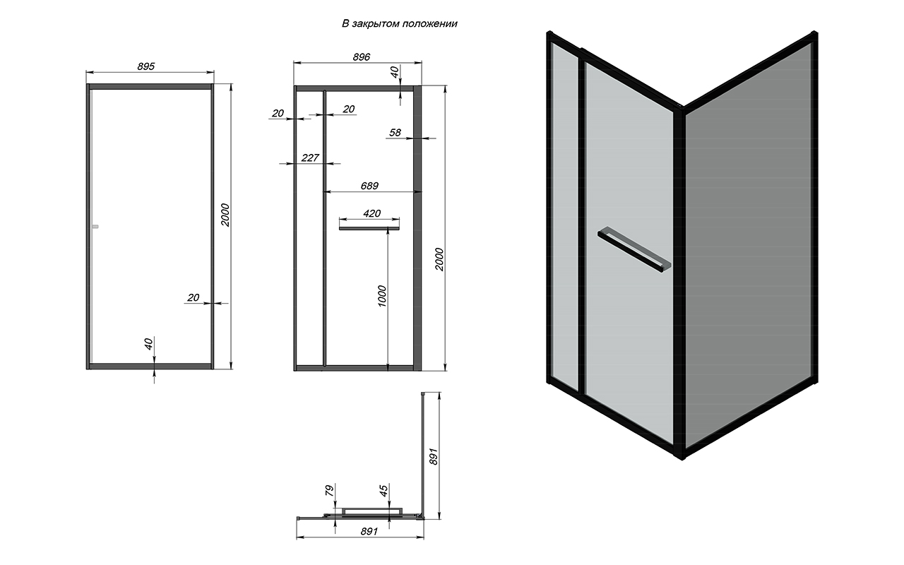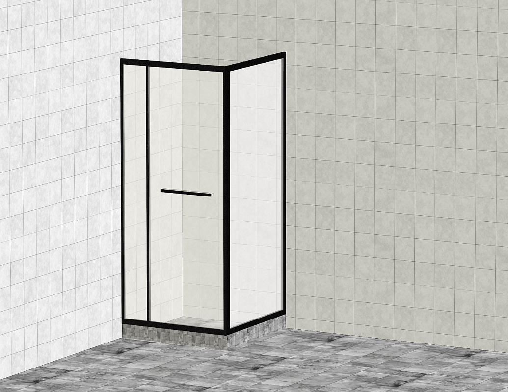 Комплект душевой с внутренней подвижной дверью, толщина стекла 8мм, 900х900х2000, AUSI 304, черная