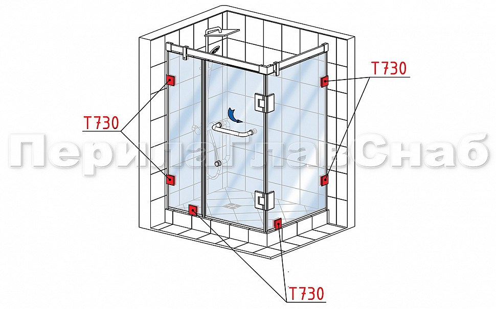 Коннектор для душевой кабины стена-стекло 45х45 мм латунь-хром, полированный t730 PC