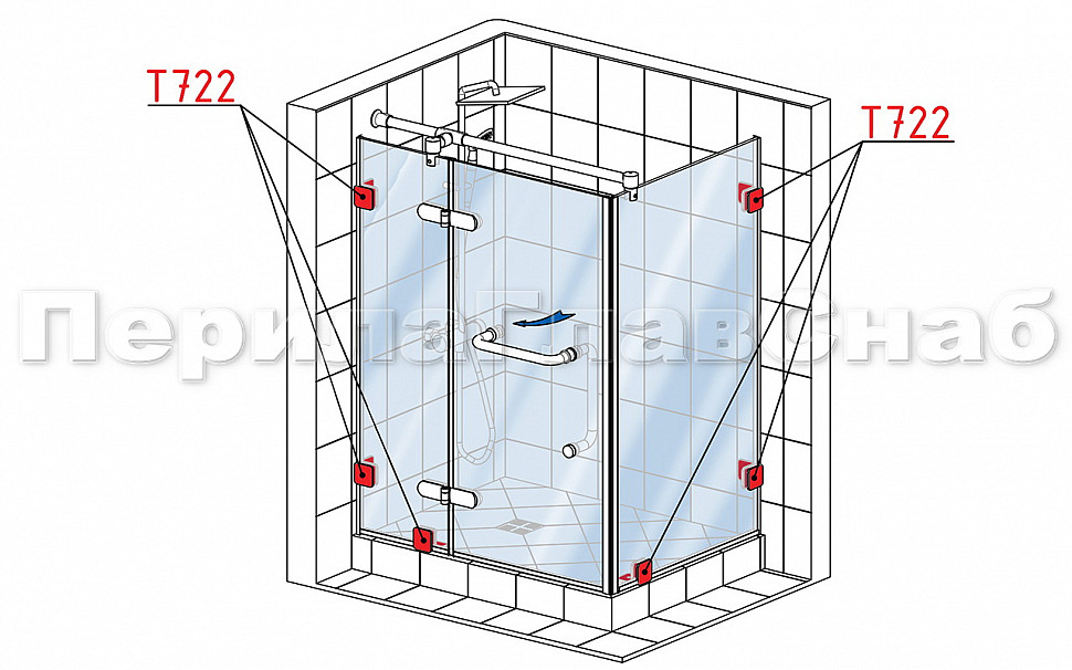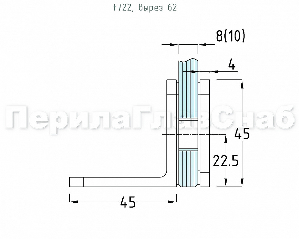 Коннектор для душевой кабины стена-стекло 90° 45х45 мм латунь-хром, полированный t722 PC
