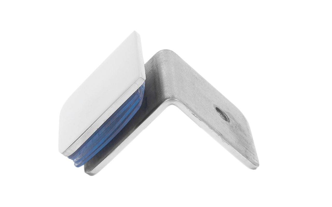 Коннектор для душевой кабины стена-стекло 90°, 45х45 мм. Материал - латунь-хром, поверхность - полированная