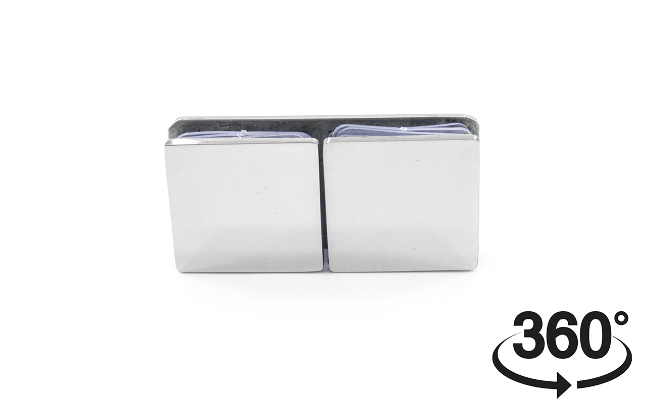 Коннектор для душевой кабины стекло-стекло 180°, 45х45 мм. Материал - латунь-хром, поверхность - полированная