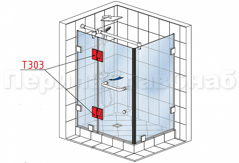 Комплект раздвижной системы для стеклянной душевой, нержавеющая сталь AISI 304, полированная t401 PSS купить в Волгограде
