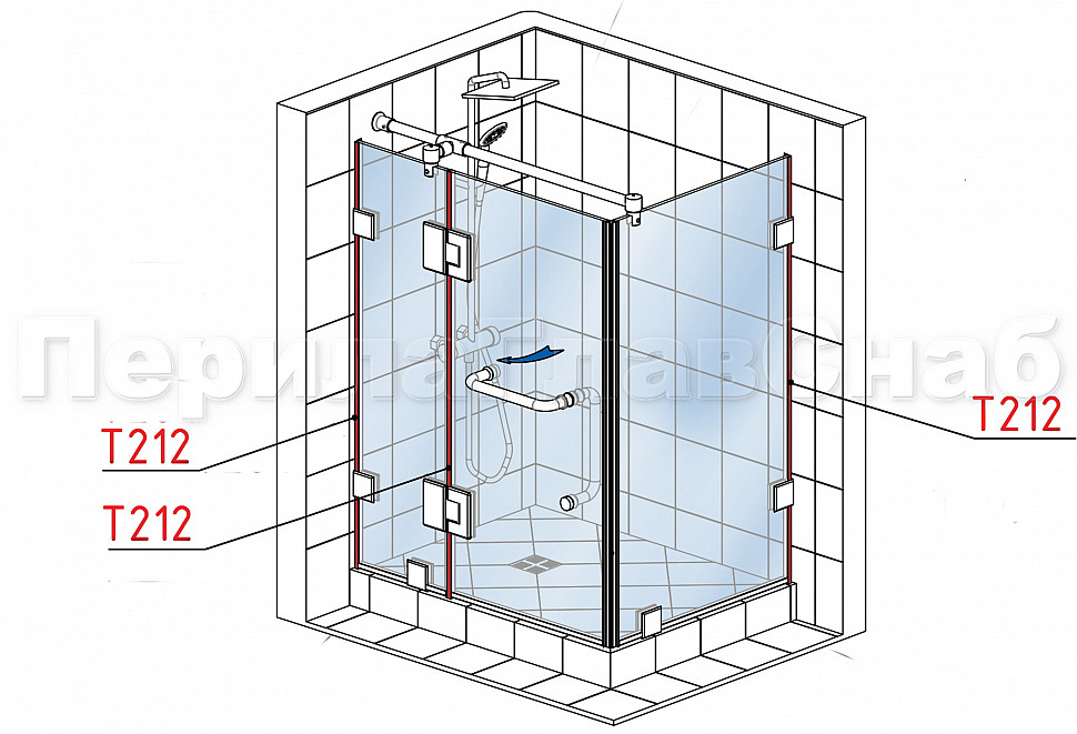 Уплотнитель для стекла в душевую кабину 8 мм, дверь-стекло 2200 мм t212