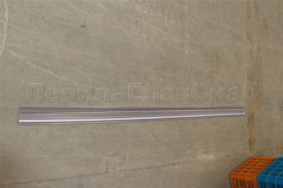 Уплотнитель имеет исполнение прозрачной поверхности, выполнен из материала ПВХ. Имеет A-образный профиль. Толщина одного типоразмера составляет 1.5 мм, длина – 2200 мм. За счет своих свойств (стойкость к щелочам, минеральным маслам и многим кислотам) прекрасно подходит для крепления стеклянного листа по всему периметру. Позволяет герметично соединять стеклянные панели с дверью, что гарантируют отсутствие течи в вертикальной части конструкции.