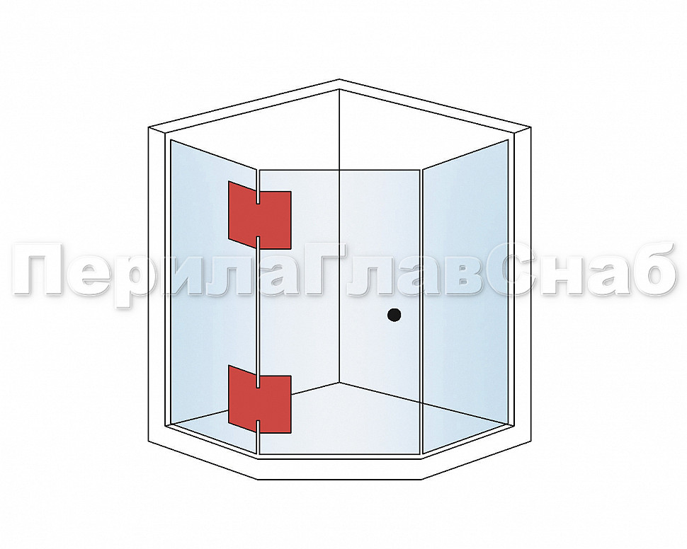 Петля стекло-стекло крепится с обеих сторон на стеклянные поверхности, плотно прижимаясь к ним своими металлическими зажимами.