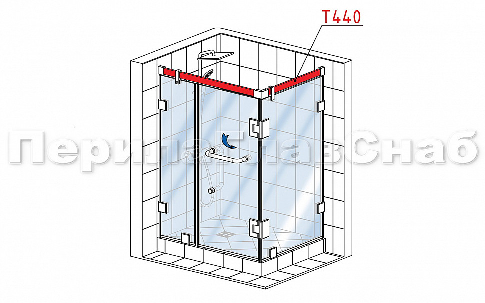 Предназначен для крепления стекла в конструкции душевых перегородок разных конфигураций