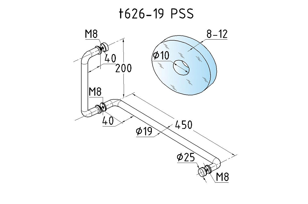 Дверная ручка-скоба 19х450х200 мм, полированная, AISI 304 t626-19 PSS