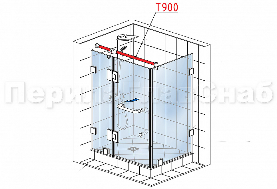 Предназначен для крепления стекла в конструкции душевых перегородок разных конфигураций.