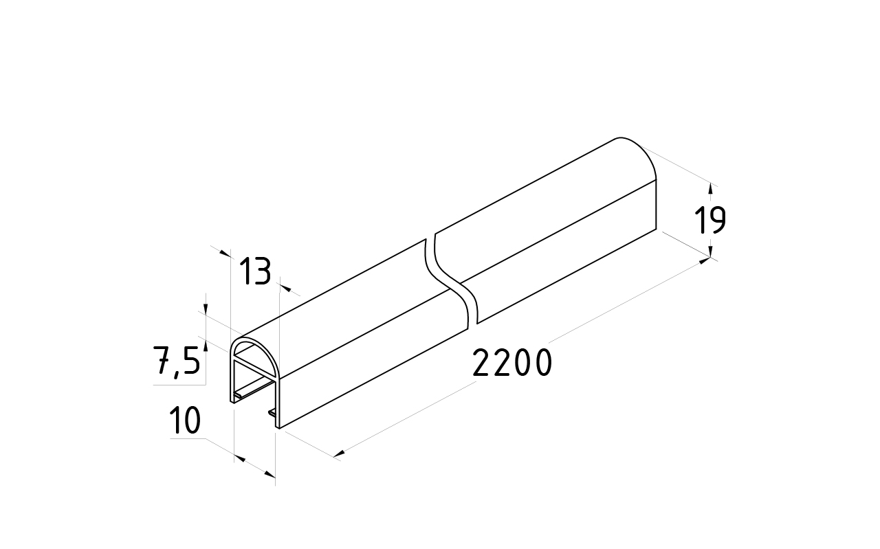П-образный профиль 19x13, L=2200, алюминий ,черный t756 BL