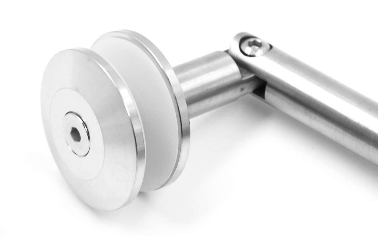 Крепление для двух стекол к ванте, поверхность полированная, марка стали- AISI 304