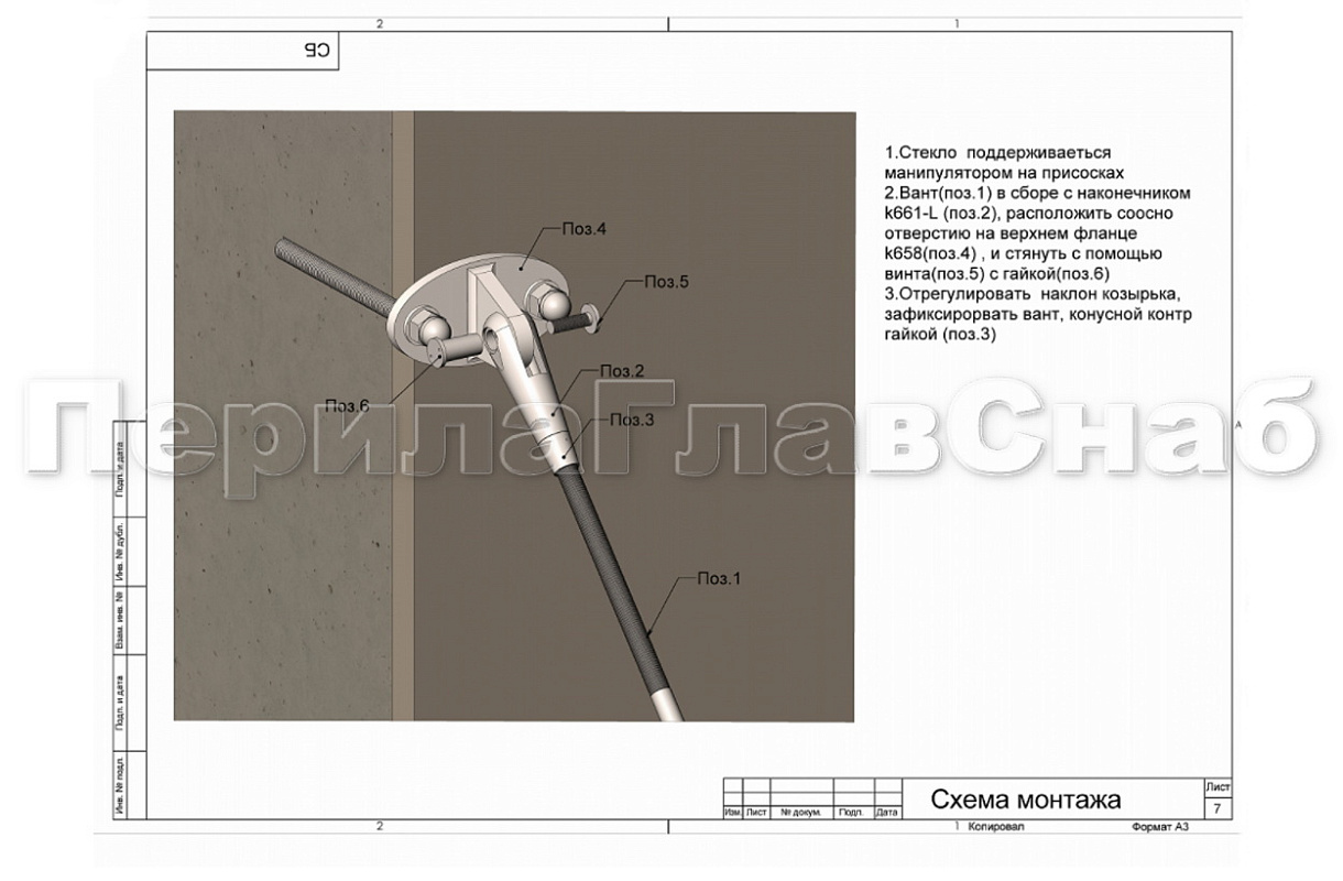 Применяется при монтаже козырьков из стекла, навесов над входом в магазин, козырьков над входом в подвал или над местом курения. Один из самых ответственных элементов крепления козырька. Отвечает за крепление конструкции непосредственно к зданию.