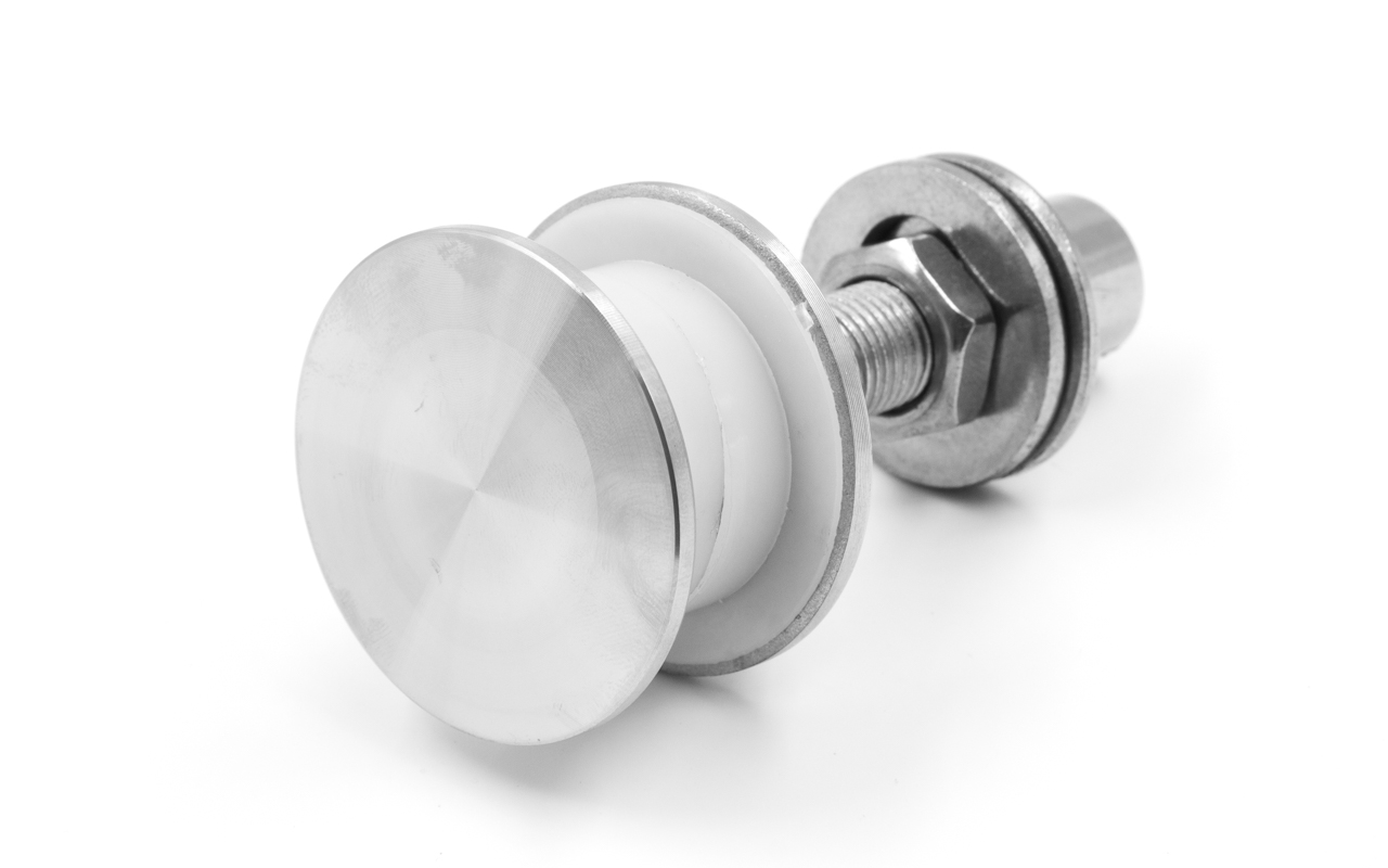 Рутель шарнирный (стеклодержатель) используется при спайдерном остеклении, остеклении фасадов, остеклении вертикальных фасадов, остеклении вентилируемых фасадов, монтаже входных козырьков из стекла, монтаже входных козырьков из поликарбоната. Отверстие в стекле под рутель нужно делать 40мм. Предназначен для стекла или поликарбоната от 16 до 24 мм. Шаг резьбы рутеля 1,5 мм. При желании можно монтировать более тонкое стекло с применением прокладочных элементов. Гарантированно выдерживает нагрузку до 200 килограмм на деталь. Это стандартная нагрузка для стеклопакетов 8+8 и 10+10. Однако в полевых испытаниях стеклодержатель легко справился с 300 килограммами.