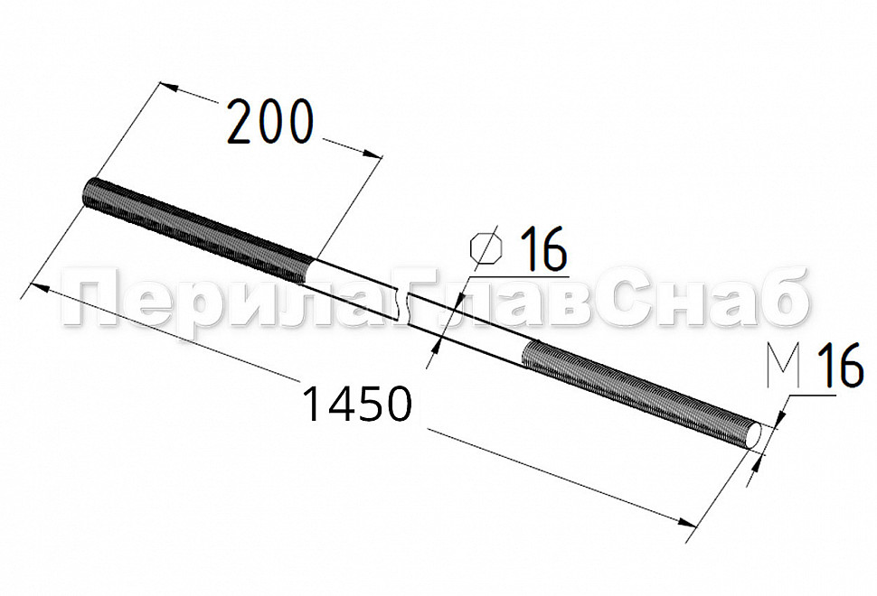 Вант (тяга) для козырька М16, длина 1450 мм. Шаг резьбы 2 мм, левая/правая - 195 мм с каждой стороны. Марка стали - AISI 304