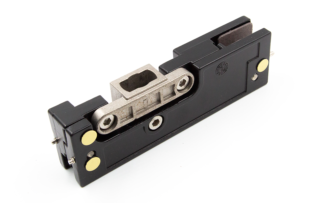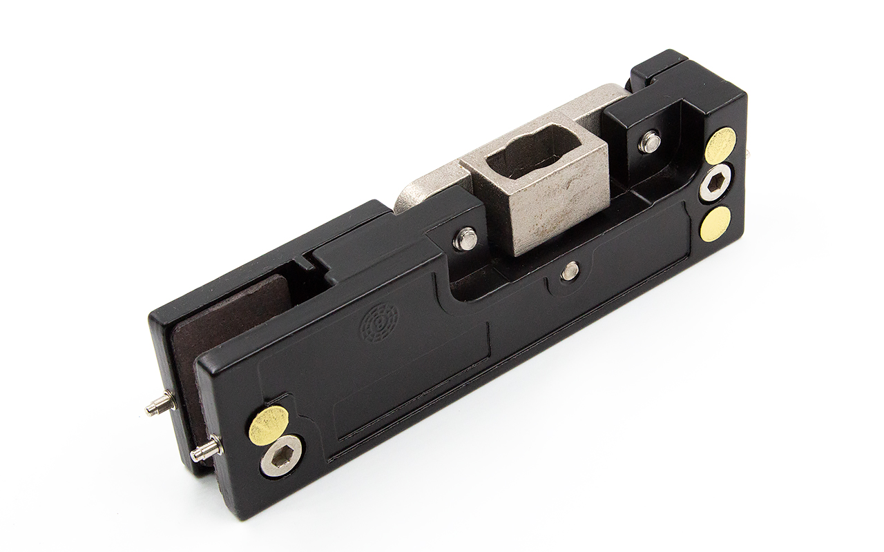 Сбоку нажимаем на крепления крышек и снимаем. Отвинчиваем винты, и фиксируем фитинг в подготовленный вырез в стекле. Далее закручиваем и фиксируем обратно крышки.