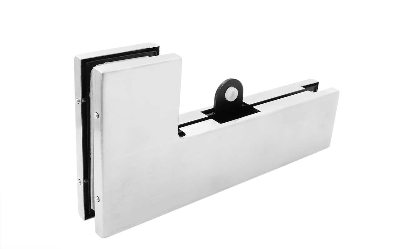 для соединения стационарной панели стеклянной перегородки с верхней фрамугой. Стопор ограничивает открывание двери в любую из сторон по выбору.