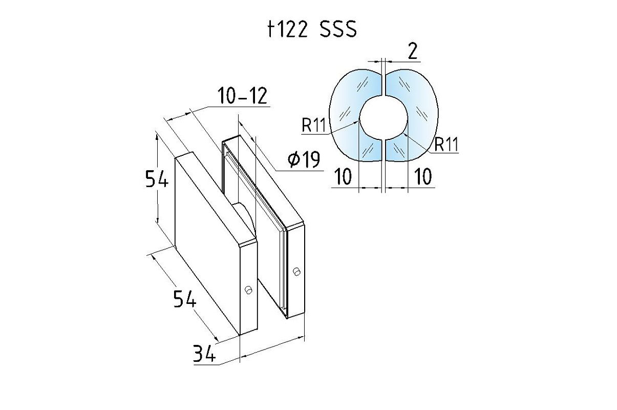 Коннектор стекло-стекло 53х53, шлифованный t122 SSS