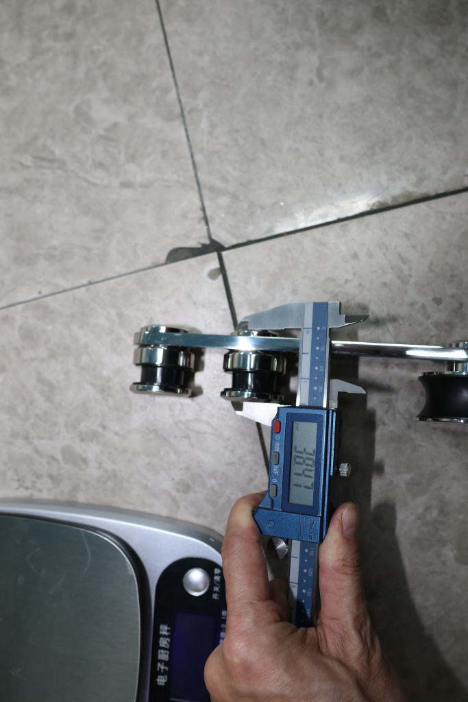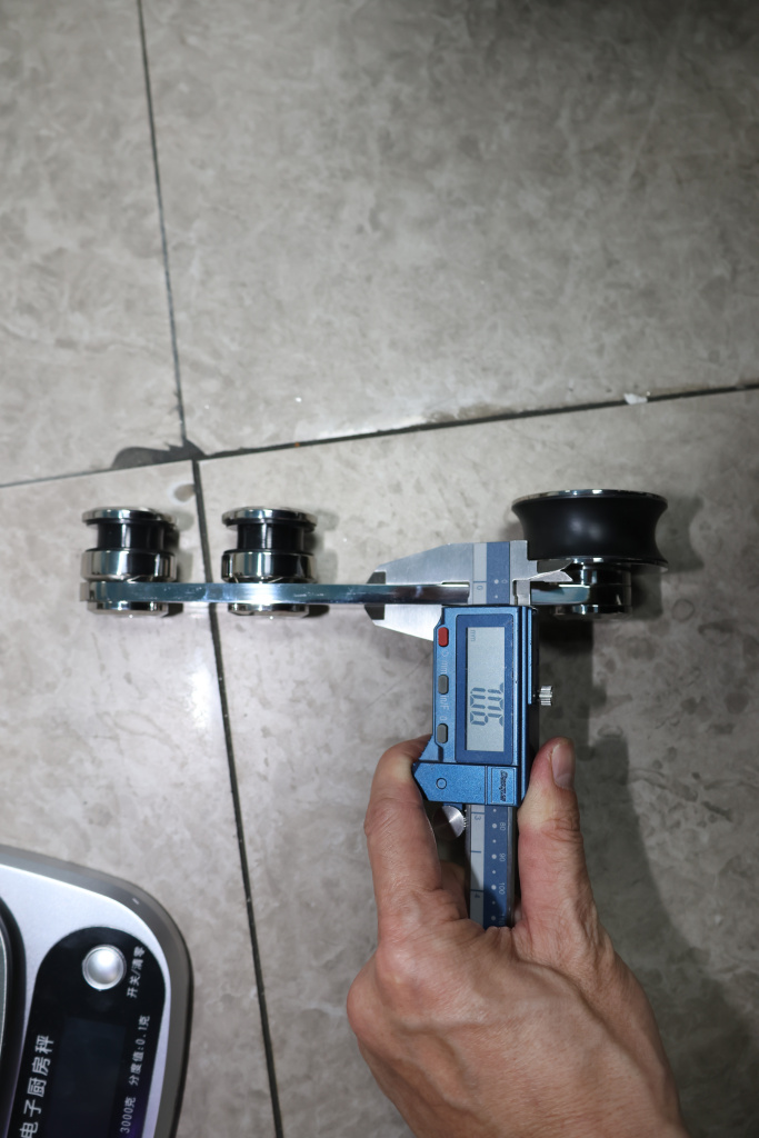 Комплект раздвижной системы для стеклянных дверей, марка стали- AISI 304, полированный. Максимальный вес двери на две каретки 80 кг.