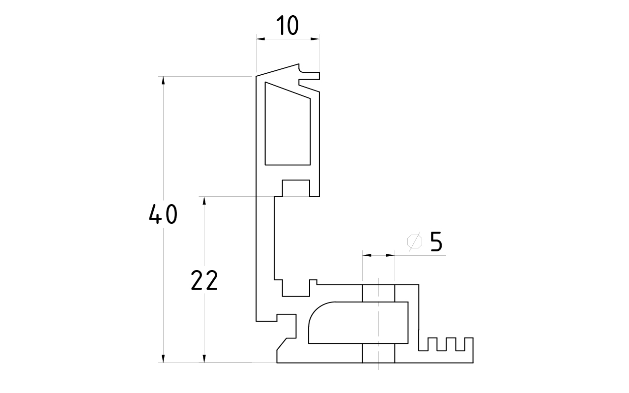 Основное предназначение зажимного профиля т40 - закрепление стеклянных полотен 8, 10 и 12 мм к полу, потолку, стенам. Элемент фурнитуры также можно применять на толщине 9 и 11 мм без дополнительных деталей.