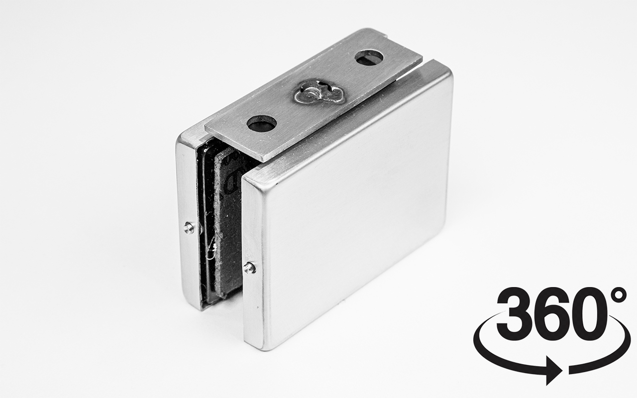 для крепления стеклянного полотна к проему, металлоконструкции под углом 90*. Толщина стекла 10-12 мм