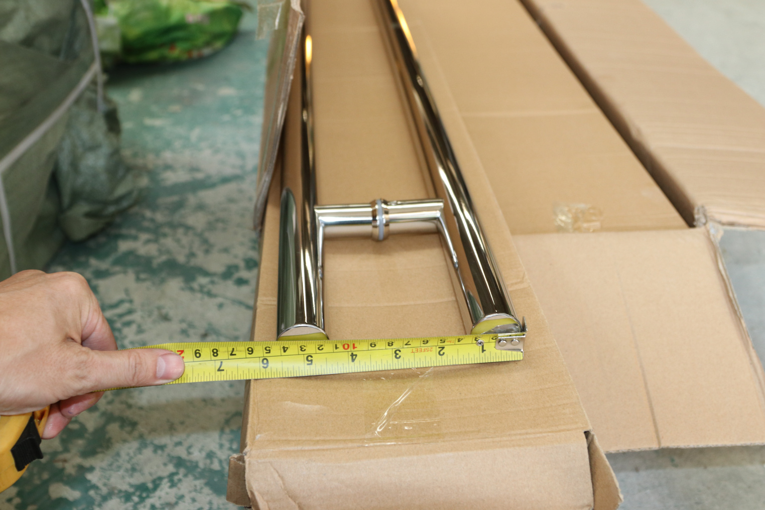 у основания ручки откручиваем с помощью шестигранника винты, делим ручку на две части, в заранее заготовленные отверстия вырезы в стекле 10-12 мм фиксируем первую часть ручки в отверстиях и с обратной стороны ответную часть затягиваем с помощью шестигранника.