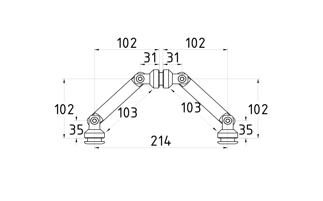 Крепление на три стекла, штанга 103 мм, без зенковки