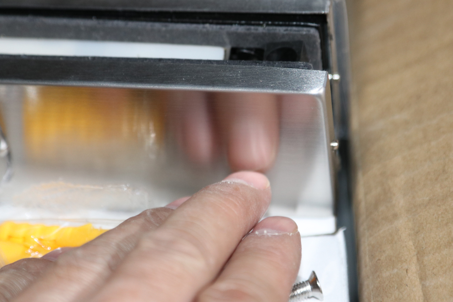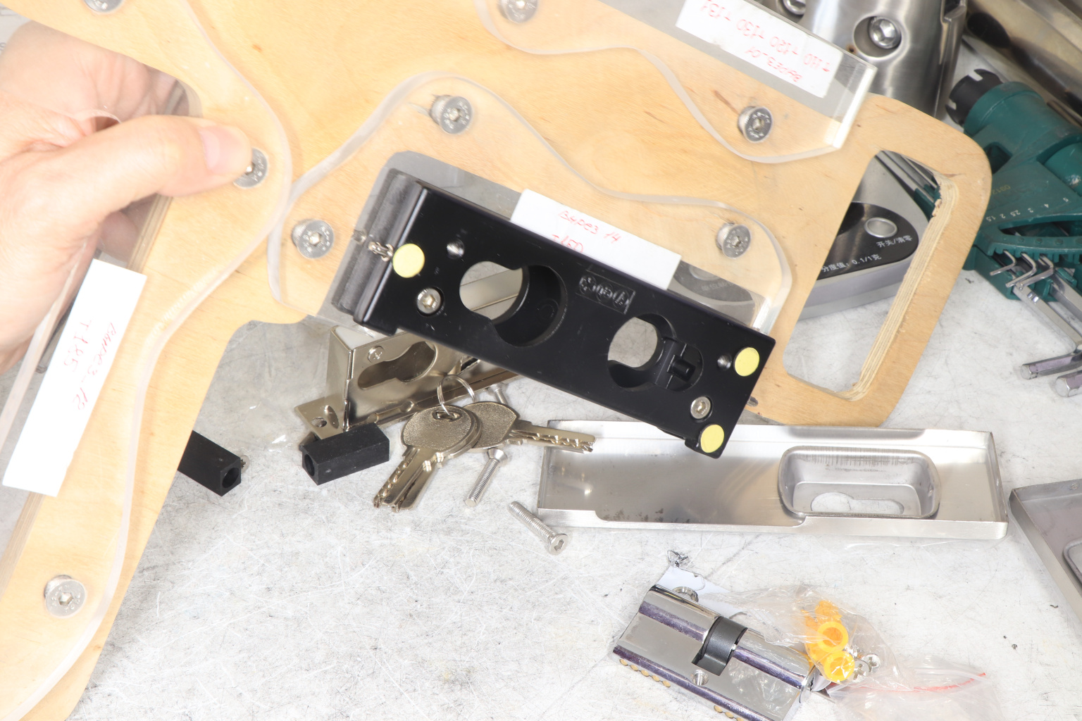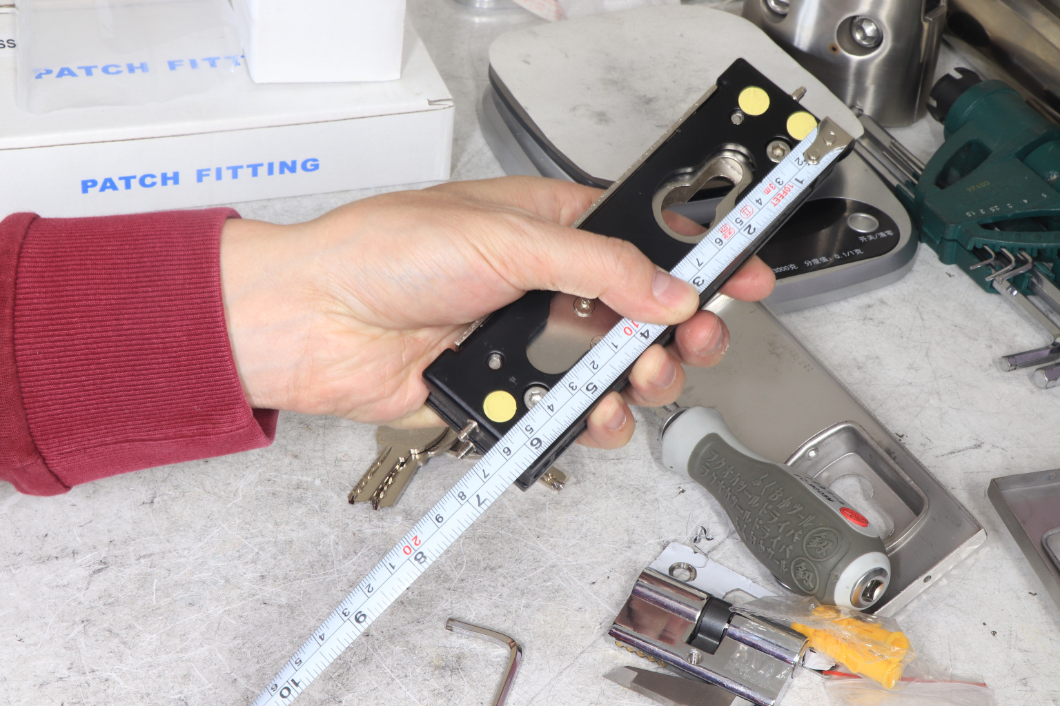 Сбоку нажимаем на крепления крышек и снимаем. Отвинчиваем винты, и фиксируем замок в подготовленный вырез в стекле. Далее закручиваем и фиксируем обратно крышки. Ответную часть крепим под замком с пробуренным отверстием под ригель.