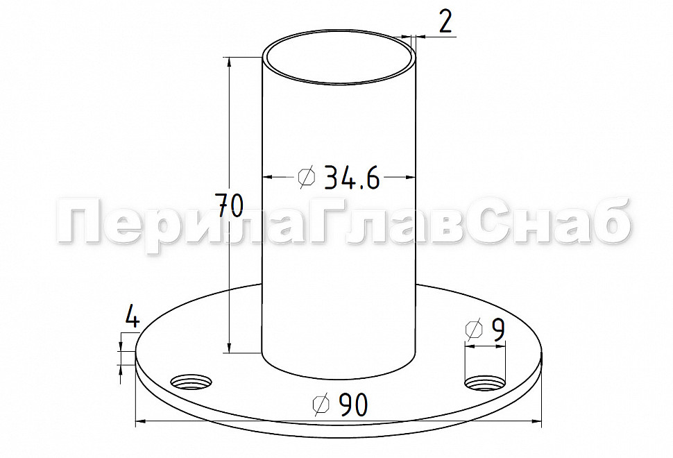 Деталь для крепления стойки из трубы Ø38.1 мм (k819, k849). Основание закрывается декоративной крышкой k201. Предназначена прежде всего для крепления основания стоек самосборных ограждений внутри трубы с помощью специального клея (Ф-1105, Ф-1106, Ф1107).