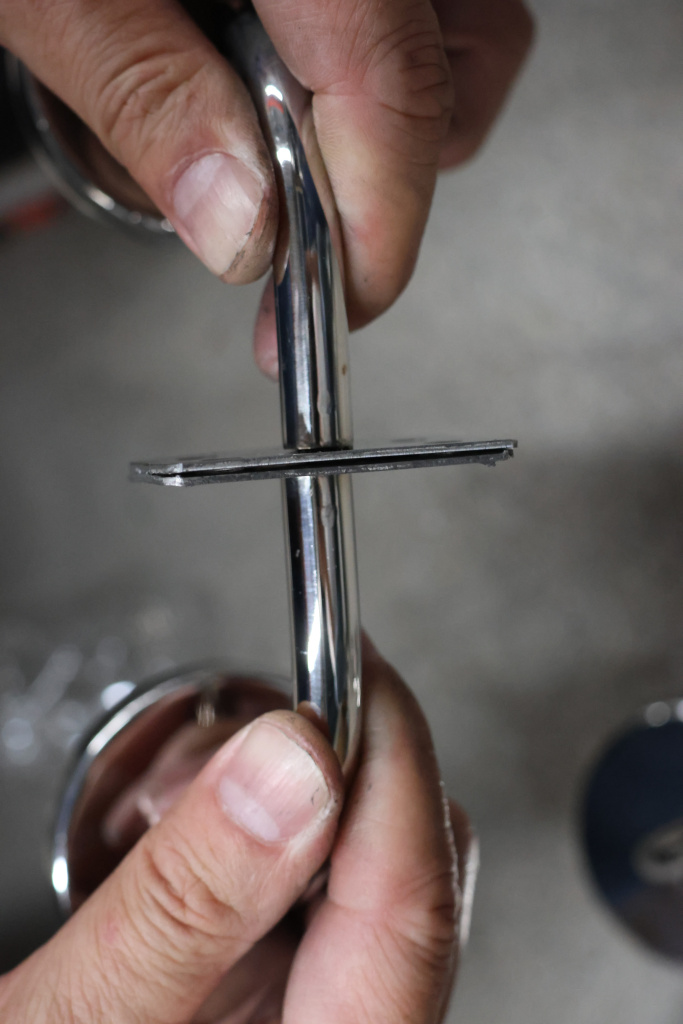 Применяется для бокового крепления нержавеющего поручня под сварку или на саморезы. Ложемент у пристенка под плоскость, так что вы с легкостью можете крепить любую профильную трубу. К стене стальной держатель крепится фланцем на три самореза ⌀3 мм.