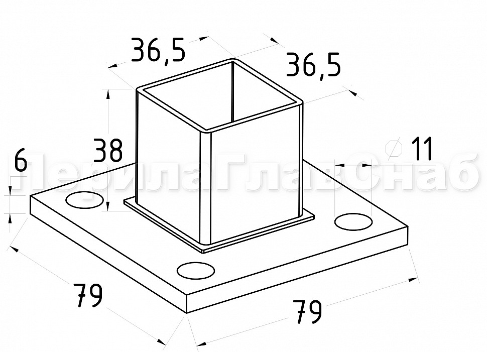 Фланец для трубы 40х40, литой, закладная под стойку, AISI 304 k350