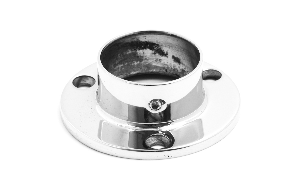 Фланец для трубы диаметром 38.1 мм. Полированный, литой, под три самореза 4.8 мм. Марка стали - AISI 316
