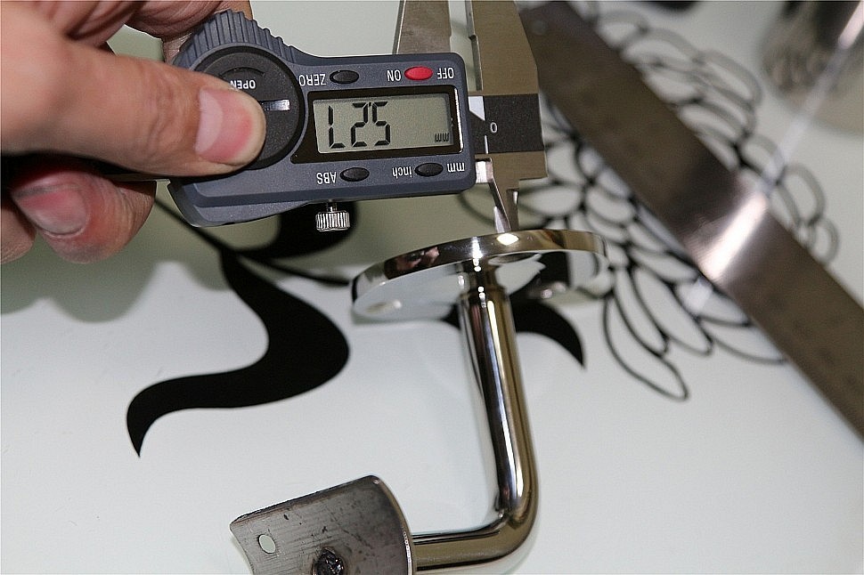 Пристенок с ложементом под трубу диаметром 38.1 мм, отверстия в фланце для самореза с потайной головкой. Деталь полированная, сварная. Марка стали - AISI 304.