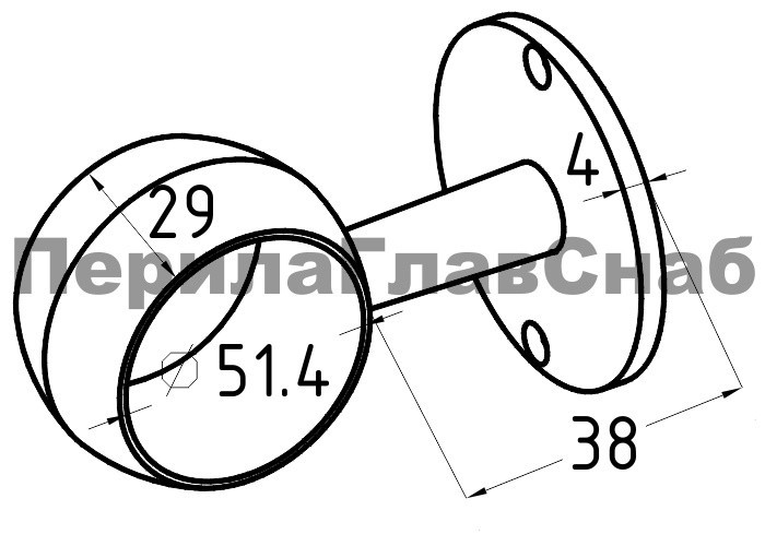 Применяется для бокового крепления нержавеющего поручня к стене.