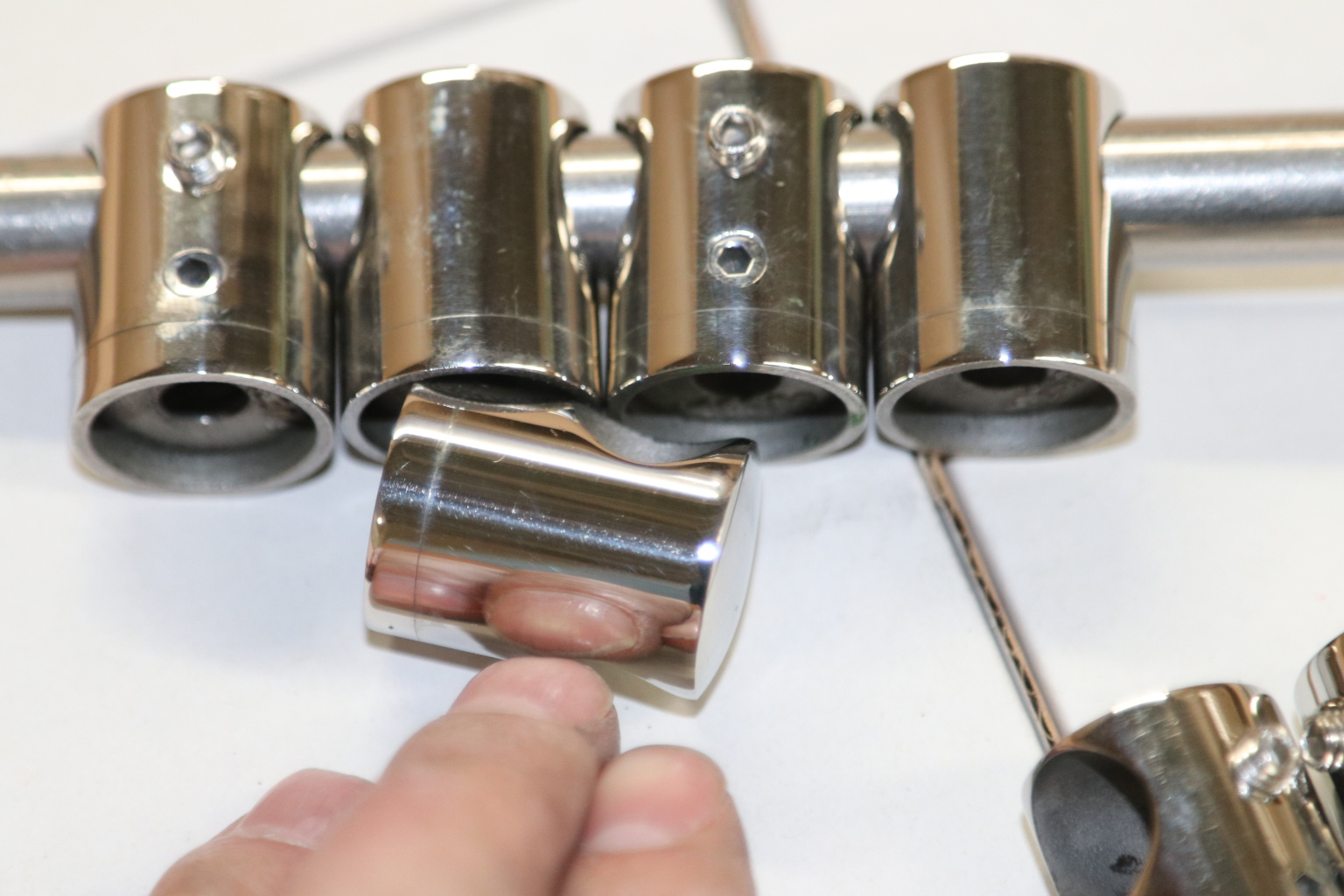 Ригеледержатель монтируется к трубе стойки на сварку с наружной стороны, либо на вытяжную заклепку М6. Для этого внутри ригеледержателя сделана специальная полость. Сам ригель (тетива) фиксируется шестигранником.