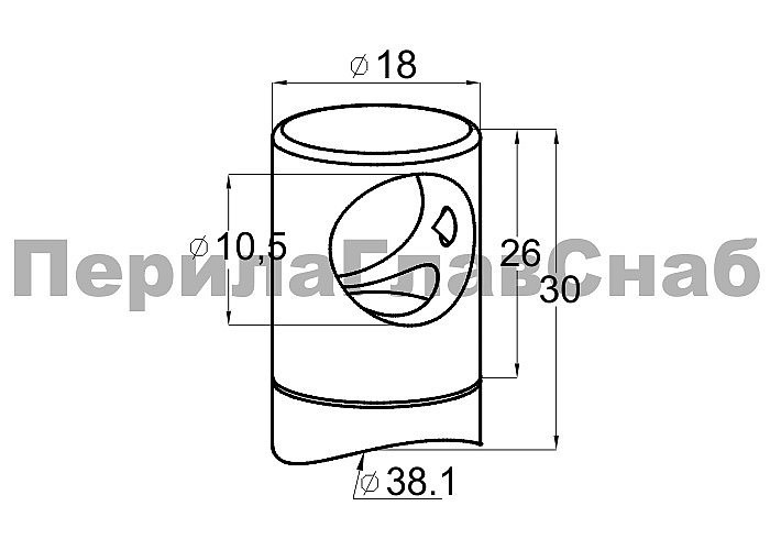 Ригеледержатель k082, разборный, под трубу Ø38.1 мм и ригель (леер) - 10 мм, ригель крепится сквозь отверстие 10.5 мм, шурупом под шестигранник. Деталь полированная, с изменяемым углом прокладки ригеля.