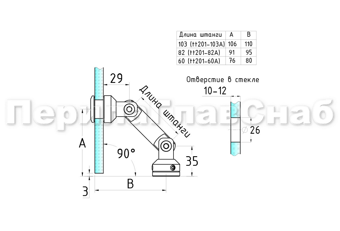 1. t007 Стеклодержатель без зенковки, шарнирный, для стекла 10-12 мм, AISI 304 шлифованный